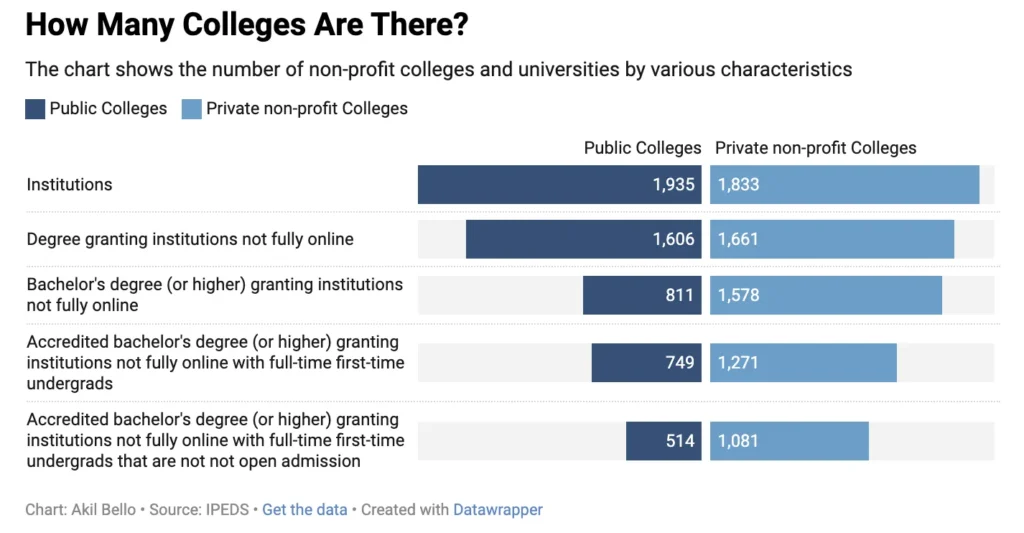 Part of the challenge in explaining college admissions is the difficulty in explaining college. The typical college admission conversation is about residential colleges that are not open admission and award at least a bachelor’s degree. That means the conversation about college admission is focusing on less than three in 10 colleges. Even if we focus on that popular but limited view of college, the stress about college admission is driven by a hyper-focus on the ones most difficult to get into. Of the 1,665 colleges that are not open access, more than 75% admit more students than they reject. So getting into college is only hard if you restrict consideration to the most popular and rejective colleges in the country.