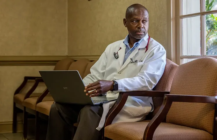 About 50 miles from the sandy beaches and golf courses along the coastline of this racially divided state, Morris’ independent practice serves the predominantly Black town of roughly 3,200 people. The area has stark health care provider shortages and high rates of chronic disease, such as diabetes, high blood pressure, and heart disease.