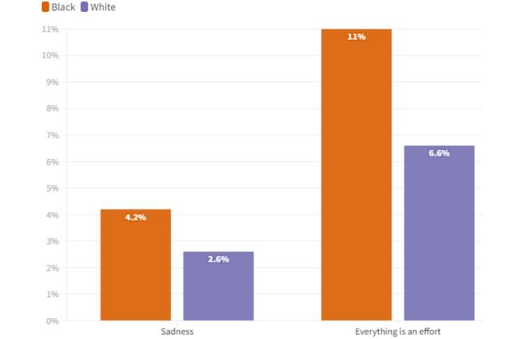 In 2018, Black adults aged 18 or older experienced higher rates of sadness and feelings that everything is an effort