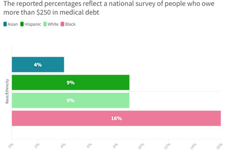 In a 2019 Kaiser Family Foundation analysis, Black Americans are more likely than any other racial or ethnic group to report significant medical debt.