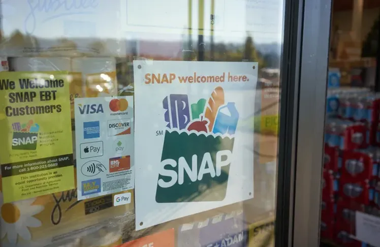 “SNAP welcomed here” sign is seen at the entrance to a Big Lots store in Portland, Oregon. Credit: hapabapa / iStock Editorial / Getty Images Plus