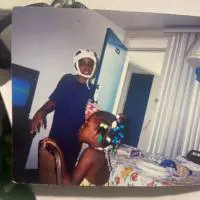 In this photo from childhood, Oronde McClain wears a protective helmet as he heals from a gunshot injury. At age 10, he was struck in the back of the head with a stray bullet that shattered his skull. Today, he remains partly paralyzed on his right side and still experiences seizures and PTSD. (Photo courtesy, Oronde McClain)