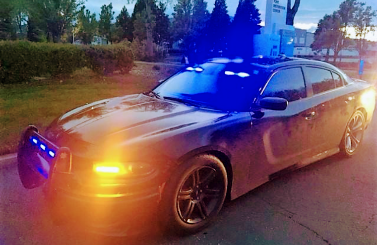 A white 2014 Chevrolet Caprice, was also stopped that had a police style spotlight and detachable white flashing lights inside the vehicle along with a tactical vest, airsoft pistol, and duty belt with a gun holster. That driver has not been charged but both vehicles were towed.