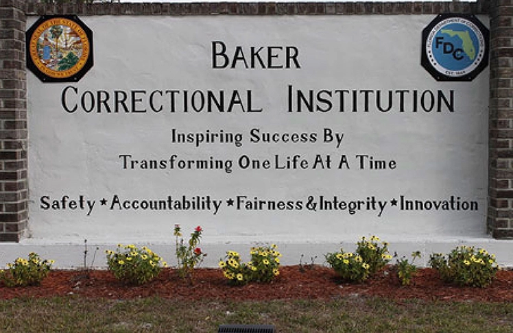 This undated image provided by the Florida Department of Corrections shows signage for the Baker Correctional Institution, a state prison about 43 miles west of downtown Jacksonville, Florida. (Florida Department of Corrections/AP via CNN Newsource)