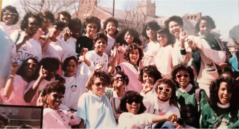 “I remember I had pledged already, and I remember saying to her, ‘Hey, you should go out for the sorority. You should really do it.’ She was like, ‘I don’t know. I don’t know what I want to do.’ I was like, ‘Look, you really need to do it.’ And she said, ‘I’m gonna do it.’ And so she did, and the rest is history.”