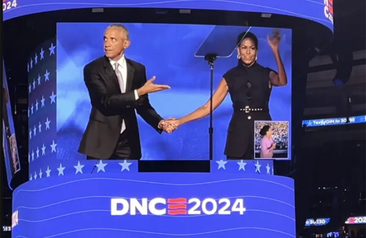 Former President Barack Obama and First Lady Michelle Obama invigorated a packed United Convention Center in Chicago with back-to-back closing speeches on the second night of the Democratic National Convention. The Obamas threw their full support behind Vice President and Democratic nominee Kamala Harris and her running mate, Minnesota Gov. Tim Walz.