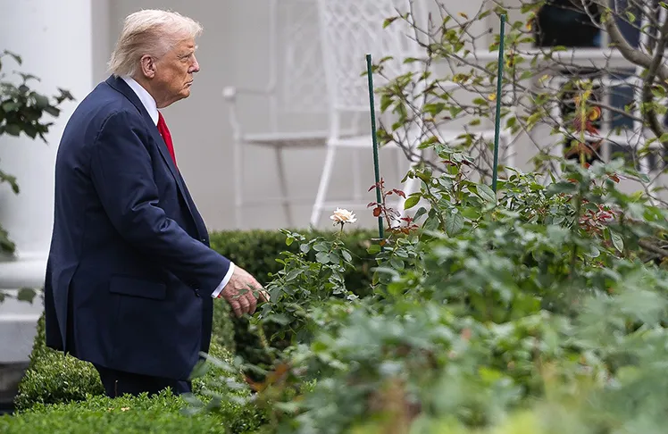 US President Donald Trump walks in the Rose Garden of the White House after arriving on Marine One in Washington, DC, on September 30. (Francis Chung/Politico/Bloomberg/Getty Images via CNN Newsource)