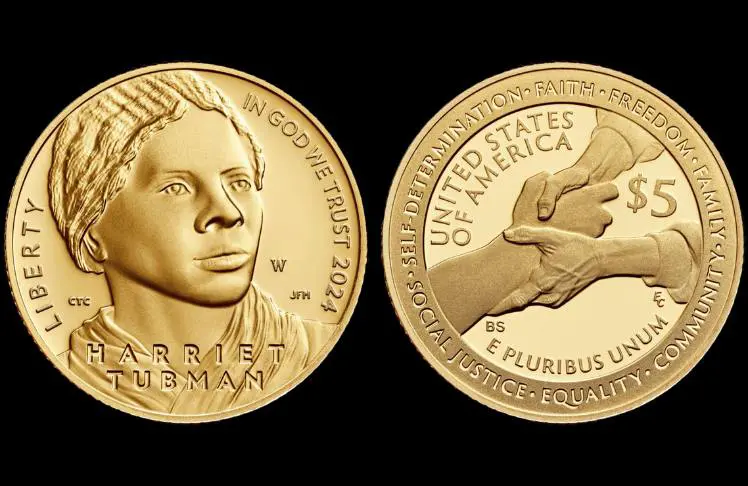 The $5 gold coin depicts an older Tubman “gazing confidently into the distance and towards the future” and is inscribed with Tubman’s core values, including faith and freedom, according to a description on the Mint’s website.